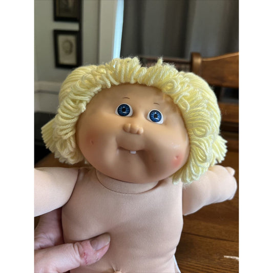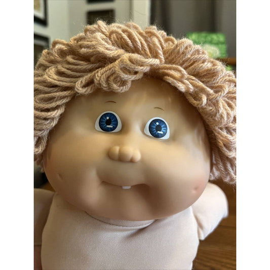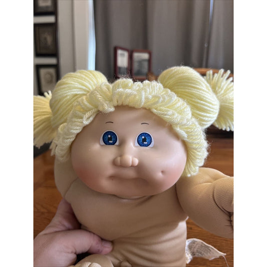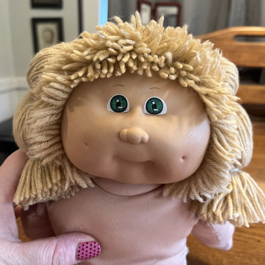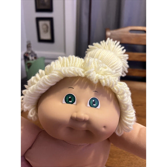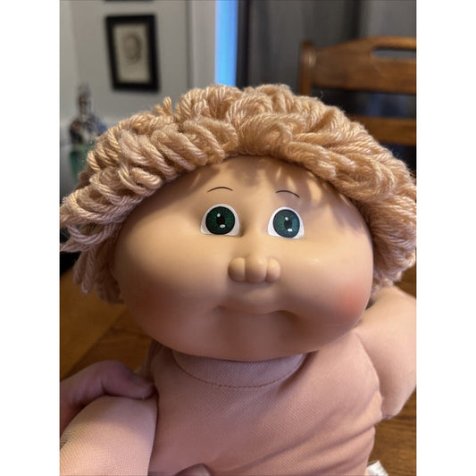 1980s Cabbage Patch Kid Lemon Blonde Hair Green Eyes Care Bears Dress Pink Trim