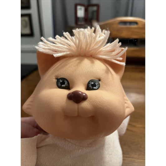 1980s Cabbage Patch Kid Peach Koosa Koosas Kitty Cat Pink Floral Dress Collar