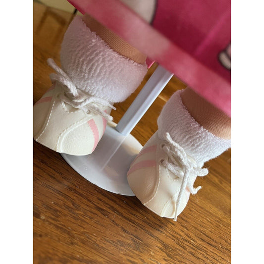 1980s Cabbage Patch Kid Brown Pigtails & Eyes Pink Hello Kitty Dress & Sneakers