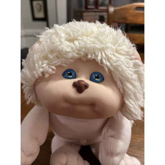 1980s Cabbage Patch Kid Lemon Hair Blue Eyes Flannel Pink Pig Piggy Dress