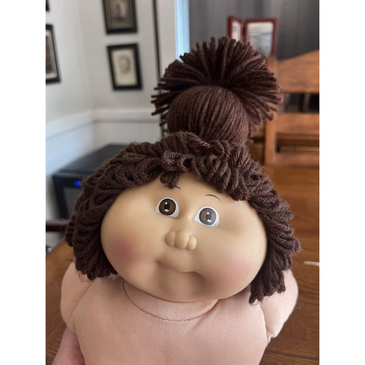 1980s Cabbage Patch Kid Brown Puff Ponytail Brown Eyes IC Yellow Lemon Dress