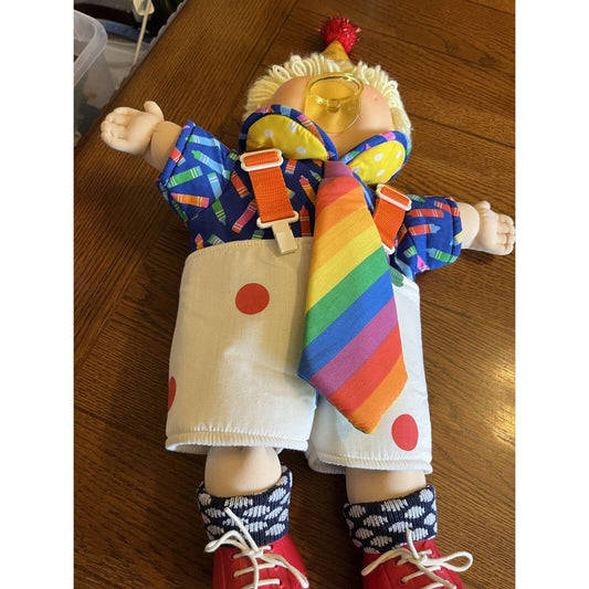 1980s Cabbage Patch Kid Lemon Hair Blue Eyes Paci Necktie Clown Outfit Red Shoes
