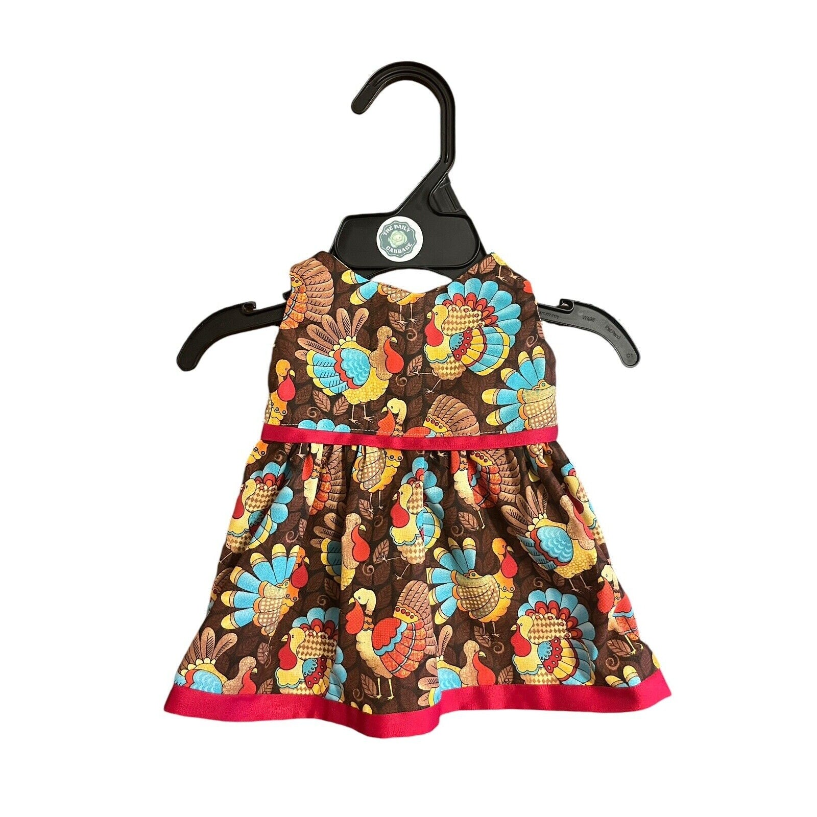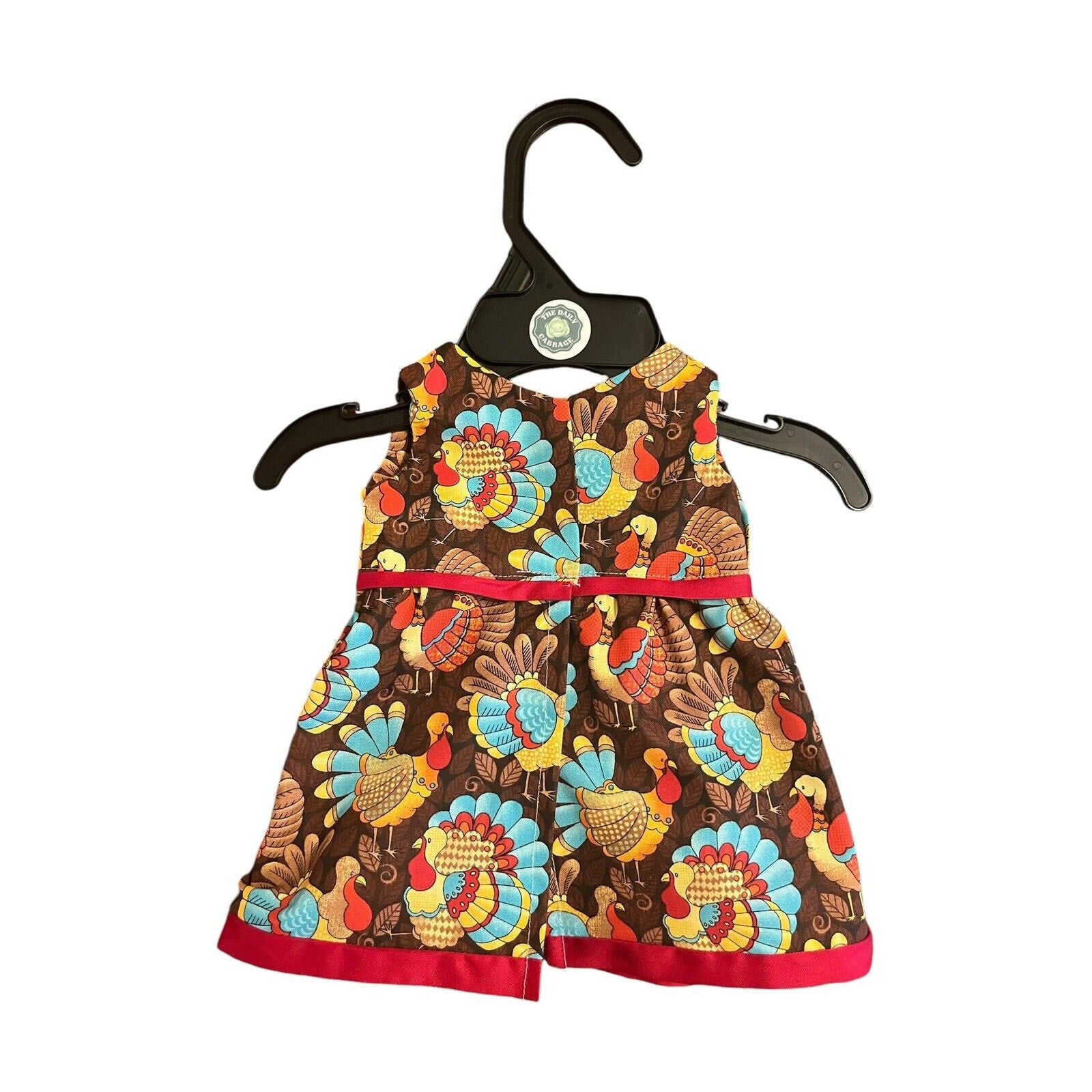 Handmade Dress For Cabbage Patch Kid 16” Doll - Thanksgiving Turkey Red Trim