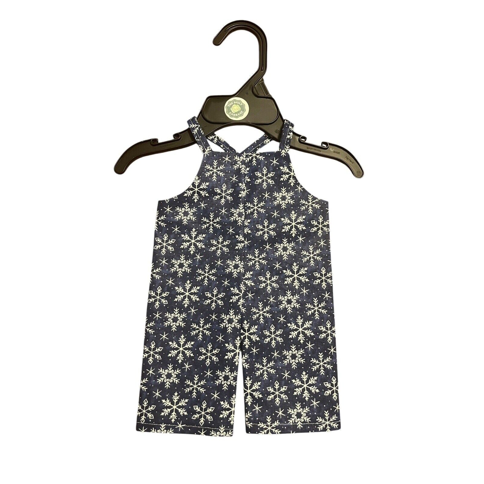 Handmade Overalls For Cabbage Patch Kid 16” Doll - Navy Blue Winter Snowflake